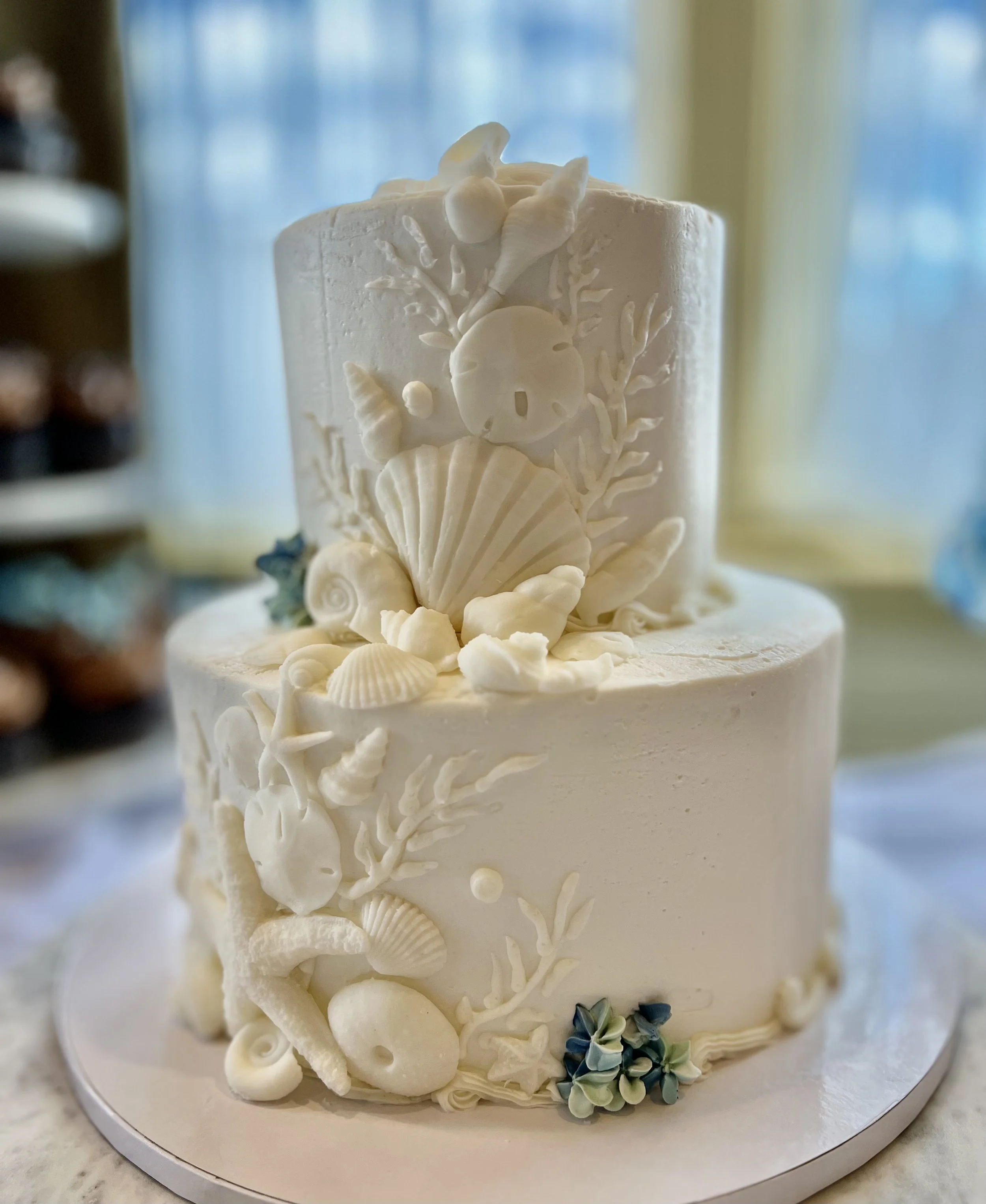 Complement your coastal or nautical-themed wedding with a seashore inspired cake.